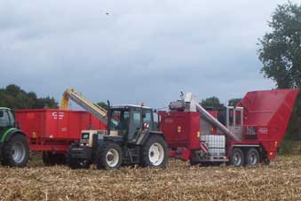 Auf Wunsch kann der Mais auch vermahlen werden, hierfür steht eine modern ausgestattete Getreide-Mühle mit 500 PS, Durchsatzwaage mit kombinierter Dosieranlage für Siliermittel ,15 t Kippbunker und steuerbarem Überladeband zur Verfügung, welches das Vermahlen am Silo oder auf dem Feld ermöglicht. Diese Mühle ist mit einem Kipper befahrbar! |