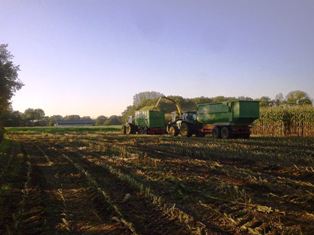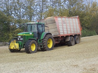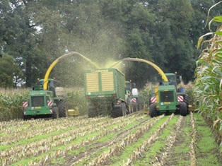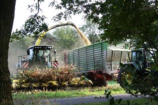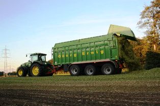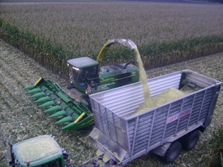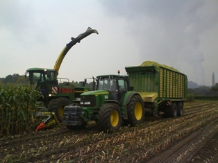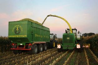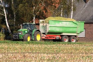Häckseln Silomais Wir bedienen Sie mit drei John Deere-Häckslern: Ein John Deere 6910, 490PS, 6-reihiges reihenunabhängiges Gebiss, ein John Deere 6850, 480 PS, Allrad, 8-reihiges reihenunabhängiges Gebiss und einen John Deere 7400, 510 PS, Allrad, 8-reihiges reihenunabhängiges Gebiss. Auf zwei Häckslern kann auf Wunsch eine Dosieranlage betrieben werden. Gewalzt wird bei uns mit 3 Walzschleppern mit Zwillingsbereifung und mit einer extra dafür abgestimmten Ballastierung. Durch die leistungsstarken Maschinen und die jahrelange Erfahrung, werden auch die schwierigsten Bedingungen leicht gemeistert und Ihr Silo optimal verdichtet. Abgefahren wird je nach Anforderung mit unseren großvolumigen Silagetransportwagen mit Größen von 45m³, 40m³ und 35 m³, oder mit kleineren Silowagen die sich auch für enge Hofgelände optimal eignen. Außerdem bedienen wir Sie auch mit einer Reihe von Muldenkippern. Lieschkolbenschrot häckseln wir mit unserem John Deere 7400 und dem reihenunabhängigen 8 Reihen Kemper Mais Pflücker. LKS ist für Viehbetriebe die günstige Alternative zum CCM und für Wiederkäuer, ist die gröbere Struktur des Futters auch ein Plus. Egal ob klein oder groß, wir haben immer genau die richtige Maschine für ihre Bedingungen parat.