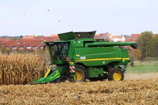 Maisdreschen Mit einem John Deere C 670i mit 460 PS und einem achtreihigen Maispflücker mit Unterflurhäcksler dreschen wir Ihren Mais, ob CCM oder Körnermais. |